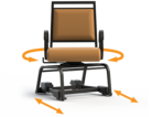 - When the controlled inline mobility of the chair/CADDIE is combined with a swivel-seat that locks every 90 degrees a seated person can move safely between two tables, eliminating the need to transfer into another chair, thereby minimizing the risk of fall/injury to either the seated person or the caregiver.